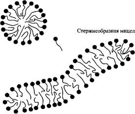 Дисперсии крупных мицелл имеют много общих свойств с растворами линейных полимеров, поэтому мицеллы ПАВ иногда называют "живыми полимерами". Аналогия в поведении таких систем позволила успешно применять теории и подходы, развитые для растворов полимеров, для описания ми-целлярных систем ПАВ. Некоторые отличия дисперсий ПАВ от растворов полимеров затрудняют сравнение этих систем. Эти различия состоят прежде всего в сильной зависимости "степени полимеризации" от некоторых условий. Более того, при некоторых условиях, например при очень больших концентрациях, процесс роста мицелл может приводить к образованию разветвленных структур.