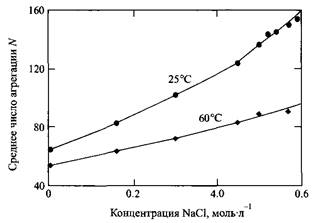 Число агрегации мицелл додецилсульфата натрия увеличивается с ростом температуры и концентрации введенных солей