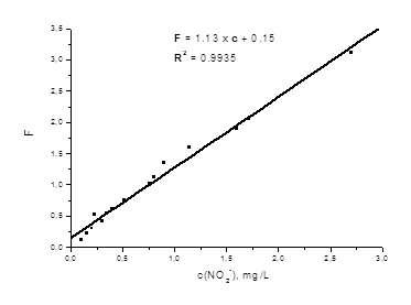 Рис. 1 Градуировочный график зависимости функции Гуревича – Кубелки – Мунка от концентрации нитрит-иона