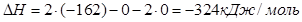 Отже зміна ентальпії системи рівна , тому ми можемо вважати, що реакція може відбуватися у прямому напрямку, її тепловий ефект додатній.