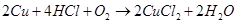 У присутності кисню можлива реакція розчинення міді у хлороводневій кислоті із утворенням відповідних солей.