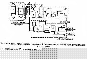 Полученный в результате варочный раствор наряду с едким натром содержал значительное количество сернистого натрия Ма25, благоприятно сказавшегося на выходе и качестве целлюлозы. Новый метод варки получил название сульфатного. Схема производства сульфатной целлюлозы и состав сульфатцеллюлозного завода показаны на рис. 1.