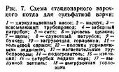 Схема этого процесса представлена на рис. 3. Материал 1 со стадии варки подается на стадию сепарации, в которой происходит отделение бумажной массы 3 от отработанного раствора 4. Отработанный раствор подают на стадию упаривания 5, где происходит удаление воды 6 и содержание твердых веществ в растворе повышается до 40—65 % . После упаривания может быть проведено концентрирование раствора (эта стадия на схеме не показана), которое позволяет повысить содержание твердых веществ до 55—65 %.