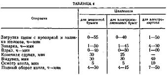 Быстрая варка применяется преимущественно для получения целлюлозы высокого выхода (ЦВВ) (55—65%) и целлюлозы нормального выхода — дреднежесткой (48—52 %) и мягкой (бели-мой ) — 35—40 %. Для нее характерны пропарка щепы, повышенный расход щелочи, быстрая заварка, повышенная конечная температура варки (174—178°С) и выдувка массы с полного давления. На сульфатцеллюлозных заводах оборот котла для варки различных видов целлюлозы составляет 4—8 ч. В табл. 4 приведены режимы варок некоторых видов целлюлозы на отечественных предприятиях.