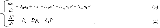 – расходы в данном месяце на оплату труда, оборудование и рекламу соответственно. Если рассмотреть более подробно каждый из членов и привести подобные, то мы придем к системе нелинейных дифференциальных уравнений (3)-(4).