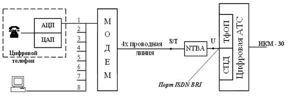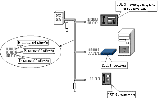 В данных линиях цифровой сигнал формируется в терминальном оборудовании абонента (компьютер, цифровой телефон), а затем передается по линии связи, но уже не в полосе 3.1кГц, а в той, которую позволяет среда передачи.