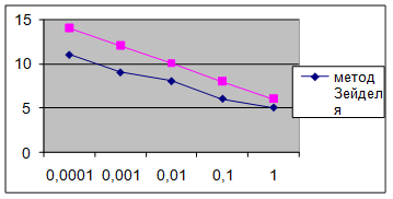 Процесс вычисления в методе Зейделя продолжается до тех пор, пока не будут выполнены те же условия, что и в методе простой итерации.