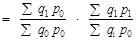 де q1, q0 — кількість реалізованої продукції відповідно за звітний і минулий роки;