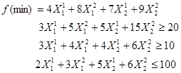 В принятых обозначениях задача сводится к следующему: найти значения переменных , при которых минимизируется величина целевой функции