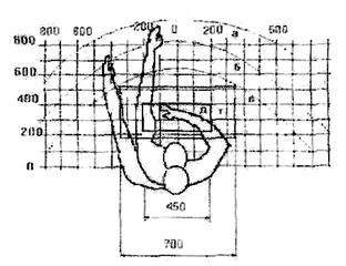 Рис. 5.1. – Зони досяжності рук в горизонтальній площині