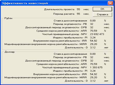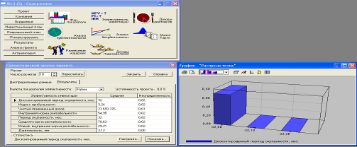 Защита проекта диалоги, которых позволяют ввести необходимую информацию о наименовании проекта, сроках его реализации, сформировать перечень реализуемой продукции, установить защиту от несанкционированного доступа к данным проекта, а также произвести настройку программы для расчета и отображения полученных результатов.