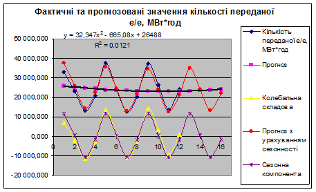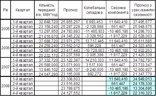 Була розроблена математична модель прогнозування кількості переданої е/е на 2008 рік з урахуванням сезонності.