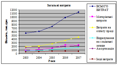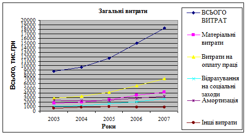Рис.1Загальні витрати підприємства за рік (2003-2007 рр.)