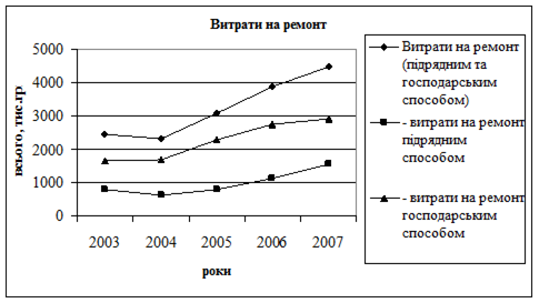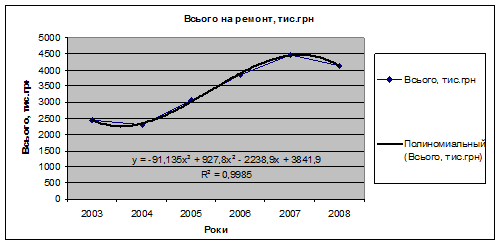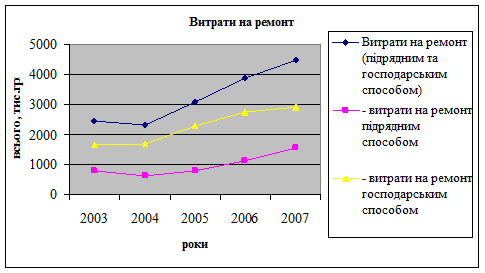 Рис.4 Графік витрат на ремонти (2003-2008 рр.)
