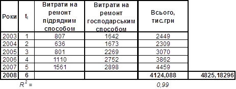Таблиця 3 Значення витрат на ремонт, що прогнозуються (тис.грн)