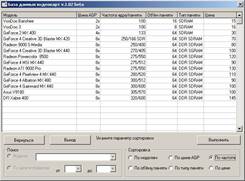 - База данных имеет кроме файла с информацией о видеокартах (.dat) файлы с произвольным доступом. Файл настроек хранит информацию о положении флажков и количестве действий в истории. Файл истории хранит все сведения истории.