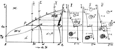 1. Диаграмма состояния сплавов, образующих ограниченные твердые растворы и перитектику