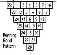 Щоб викласти плитку таким чином, потрібно починати з центру і викладати трикутник.При облицювання у розбіг вертикальні шви між плитками в кожному ряду перериваються, утворюються вертикальні "пунктирні" лінії, тільки в кутах облицювання має суцільні вертикальні шви.