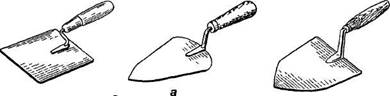 Різні за розмірами лопатки (кельми) застосовують для нанесення декоративного розчину на поверхню і його опорядження (рис. 2.7, а).