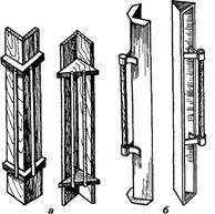 Дерев'яні або алюмінієві кутові напівтерки (рис. 2.4, а, б) використовують для опорядження кутів. Напівтерку для опорядження внутрішнього кута називають лузговою, зовнішнього - вусиковою. Для зручності в роботі їх роблять з двома ручками.