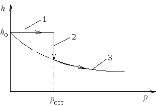 : 1 - сжатие в мерзлом состоянии; 2 - просадка вследствие происшедшего оттаивания при давлении p