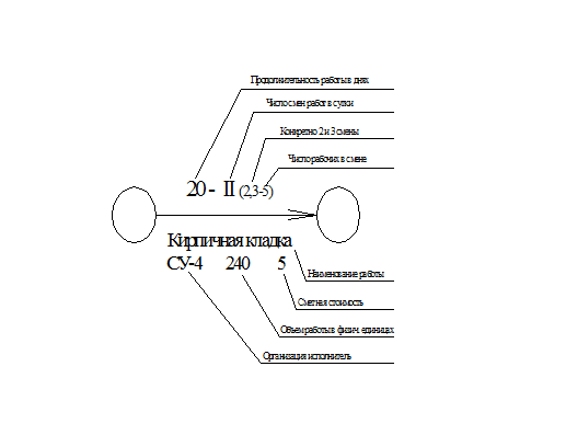 Над и под стрелкой можно проводить характеристики работ.