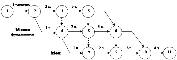 Полученные в результате этих вопросов сочетания стрелок образуют сетевой график. Для правильности отражения связи между работами сетевого графика необходимо соблюдать при его построении ряд правил. После построения модели необходимо проверять логичность работ и зависимость, а так же достаточность и необходимость событий и зависимостей. Нумерация событий должна соответствовать последовательности работ во времени, то есть предшествующим событиям присваиваются меньшие номера.