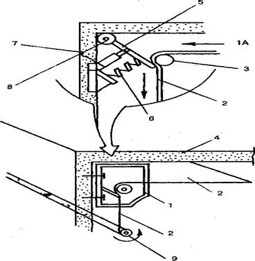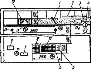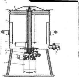 Рис.2.6. Смеситель СО-11: электродвигатель, 2 - трехполюсный выключатель 3 - тор, 4 - лопасти, 5 - бак, 6 - крышка, 7 - сливной кран