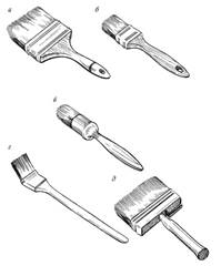 Набор кистей для малярных работ: а, б – флейцевые кисти; в – круглая кисть; г – радиаторная кисть; д – макловица.