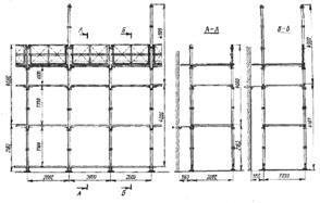 Трубчатые безболтовые леса предназначены для отделки фасадов различными видами декоративной штукатурки. Предельная высота лесов 60м, ширина настила до 2,1м. Леса состоят из двух рядов трубчатых стоек, поперечных и продольных ригелей, соединяемых крюками и патрубками. Стойки устанавливают от стен на расстоянии 550мм, вставляя их в башмаки, которые, в свою очередь, ставят на подкладки, и закрепляют их гвоздями. К стойкам крепят продольные связи, вставляя их крюки в патрубки стоек.