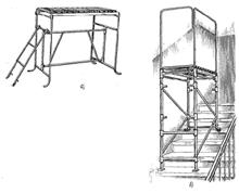 Широкое распространение для работы на небольшой высоте получили специальные подмости простые, передвижные, самоходные.