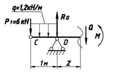Определяем реакции опор и строим эпюры моментов М и поперечных сил Q.