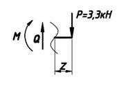 Начало координат расположим в точке С. Рассмотрим равновесие отсеченной части бруса.