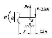 Начало координат расположим в точке Е. Рассмотрим равновесие отсеченной части бруса.