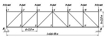 Так как рассматриваемая ферма симметрична, то усилия стержней расположенных с правой стороны от стойки 6-7 будут соответственно равны симметричным, расположенным с левой стороны.
