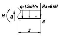 Начало координат выбираем в крайней левой точке. Рассмотрим равновесие отсеченной части бруса: