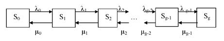 Поскольку все состояния являются сообщающимися и существенными, то существует предельное распределение вероятностей состояний. В стационарных условиях поток, входящий в данное состояние должен быть равен потоку, выходящему из данного состояния.