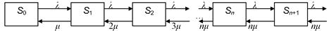 Переходы системы S в различные состояния удобно изображать с помощью графа состояний (рис. 1).
