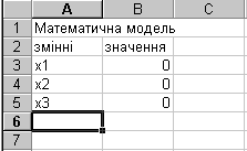 2. Завантажити табличний процесор Excel і увести математичну модель задачі.