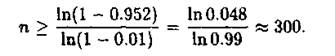 Застосовуючи формулу (2), знайдемо спочатку таку кількість виготовлених деталей, щоб з імовірністю р = 0.952 можна було стверджувати про наявність хоча б однієї бракованої деталі, якщо імовірність браку за умовою р =