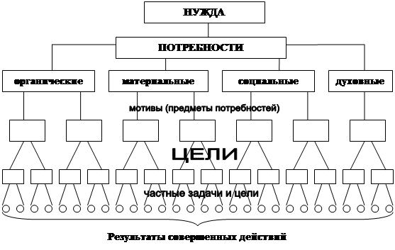 Житейская психология под мотивами понимает все то, что выступает в качестве внутренних побудителей к деятельности или поведению. При таком представлении мотивами могут быть различные потребности, интересы, стремления, желания, установки, идеалы и т. п. Другими словами, сознание обычного человека, центрированное только на выяснение причин поведения другого человека, не задумывается над многообразием психологических причин, порождающих реальное поведение или деятельность человека. Его интересует, что хочет сделать или чего хочет достичь другой человек, или почему он хочет именно это сделать или именно этого достичь. Внешнему наблюдателю представляется, что, определив предмет, необходимый другому, он знает истинную причину поведения (и деятельности) и может манипулировать его активностью. Такая стратегия в отношении другого, конечно, имеет место быть, но адекватна лишь в условиях типичных и повторяющихся ситуаций. Причем считается, что потребности являются источником порождения мотивов, имея в виду, что предмет потребности и есть мотив. [43]
