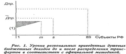 m- число регионов, получающих трансферт. Итеративная процедура происходит до тех пор, пока не будет достигнуто равенство суммы представляемых регионов.