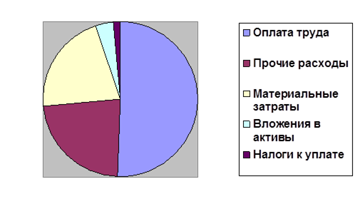 Как видно из таблицы приложения 4 «Расходы на финансирование производственно-хозяйственной деятельности предприятия "МЭС Центра" в 1 Квартале 2003 года» наиболее весомой статьей расходов является оплата труда с учетом единого социального налога, расходы по данной статье составляют 50,6% от общей суммы расхода предприятия. Материальные затраты и прочие расходы составляют 21,09 и 23,02% соответственно. Наименьшие расходы осуществляются по статьям налоги к уплате и вложение в активы при реализации инвестиционных программ, а именно 1,282 и 3,993% соответственно.