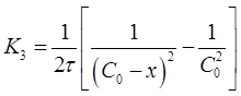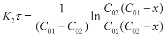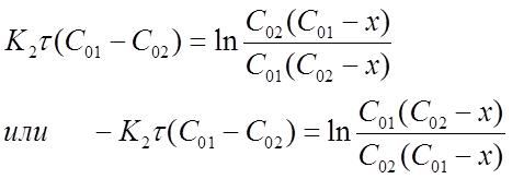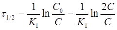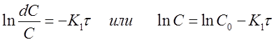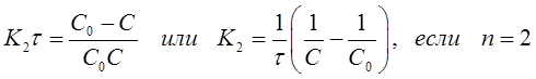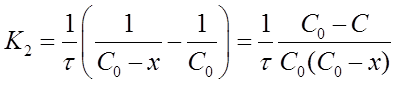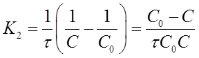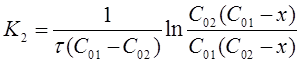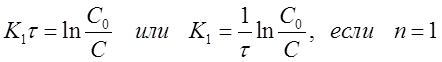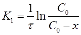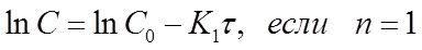 Подстановкой в эти уравнения опытных значений концентраций С исследуемого вещества, в разные моменты времени протекания реакции, вычисляют значения К.