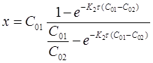 порядка, когда концентрации исходных веществ неравны можно использовать формулу (16).