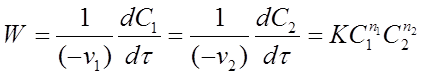 - скорость реакции, одинаковая для всех веществ, участвующих в данной реакции;