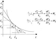 При изучении кинетики химических реакций обычно получают зависимость концентрации какого-либо компонента от времени τ.