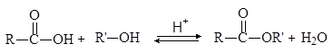 Карбоновые кислоты реагируют со спиртами с образованием сложных эфиров (эстеров) по реакции конденсации получившей название этерифиация