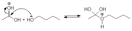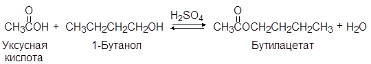 Напишите реакцию 1-бутанола с уксусной кислотой в присутствии серной кислоты и опишите ее механизм.
