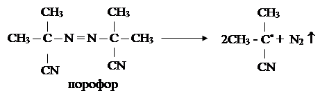 Полимеризация акрилонитрила в блоке инициируется светом, азосоединениями, перекисями, ионизирующим излучением, а также любым другим источником получения радикалов. Через некоторое время после начала действия радикалов начинается выпадение полимера в осадок. В это время наблюдается увеличение суммарной скорости реакции. Дальнейшая реакция протекает в гетерогенных условиях. Реакция осложняется адсорбционными процессами и может протекать на частицах полимера как на матрицах. В гетерогенных условиях скорость реакции зависит от структуры выпавшего полимера, от удельной поверхности частиц и гидравлических условий их движения. Энергия активации суммарного процесса полимеризации при небольших степенях превращения акрилонитрила составляет около 30 ккал/моль. Высокая энергия активации, а также высокая теплота полимеризации (17,3 ккал/моль) исложность теплообмена приводят к взрывному характеру протекания полимеризации акрилонитрила в блоке. Последнее обстоятельство является одной из причин того, что блочная полимеризацияне применяется в производстве.